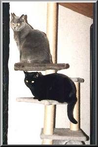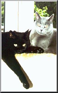 Hallo, wir sind aus dem Hause der Britisch Kurzhaar und wurden am 30. März 1995 in Kassel (nahe der Karlsaue, wie unser Zwinger-Name schon erahnen läßt) geboren. Wir waren fünf Geschwister, zwei graue und drei schwarze.