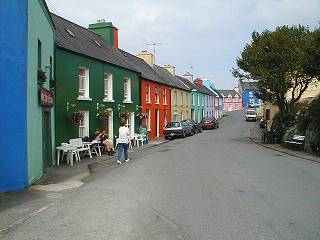 Auf Beara - einer der "fünf Finger" genannten Halbinseln an der Südwestküste Irlands findet man neben geschichtsträchtigen Orten wie Ringforts und Ogham-Steinen auch viele kleine, bunte Örtchen. Eines davon lag auf unserer Reiseroute durch die Halbinsel - und wir haben gern hier Pause gemacht bei Tea and Cake (gleich vorn in dem dunkelgrünen Haus mit den Stühlen davor). Ein radfahrendes Pärchen gesellte sich dann noch draußen "im Biergarten" dazu. Sonst nur Ruhe weit und breit - Herrrrrrlich! |
